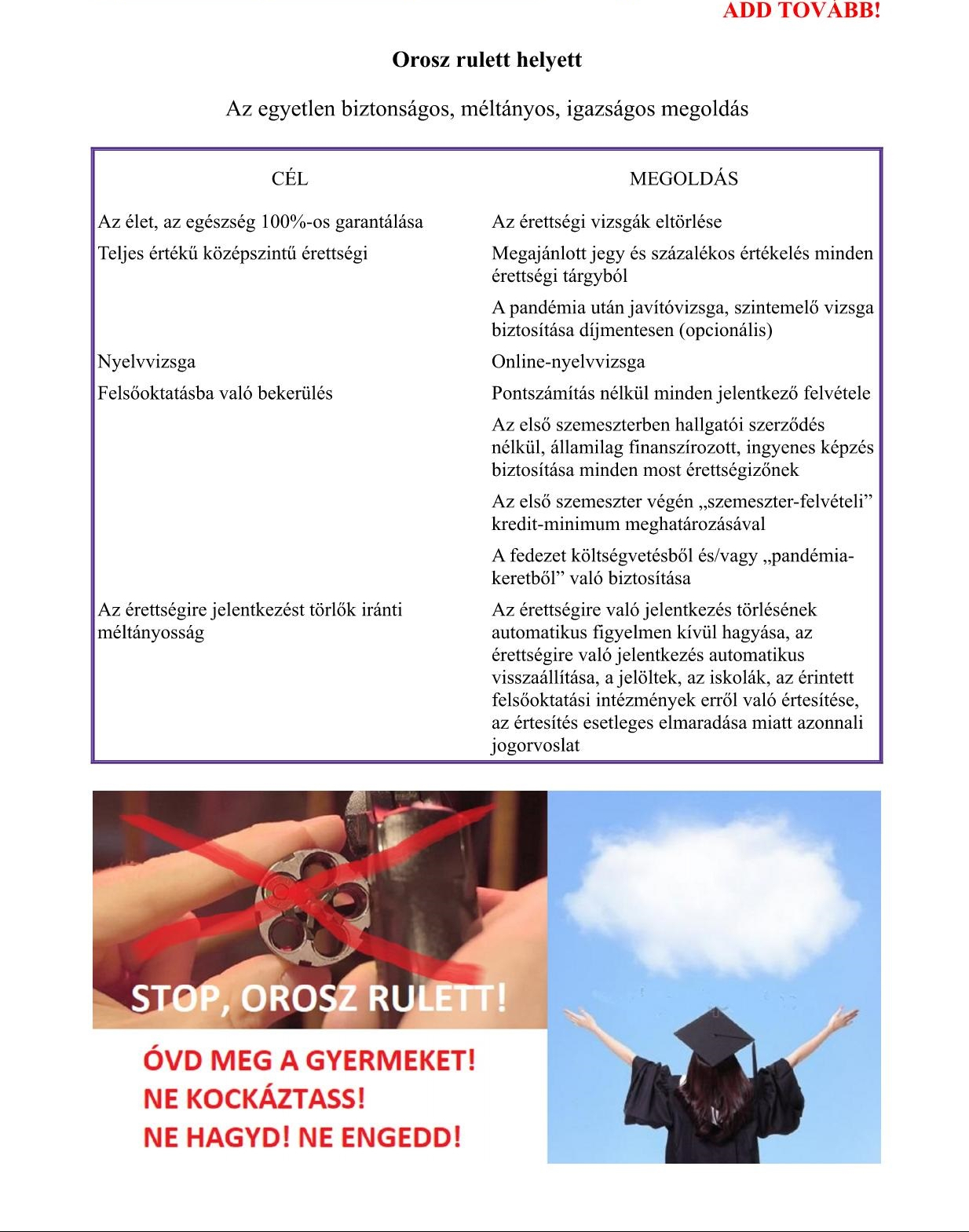 - Az élet, az egészség 100%-os garantálása csak akkor lehetséges, ha nem lesznek érettségi vizsgák.
